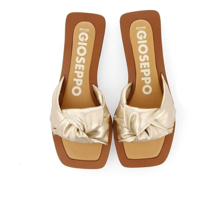 Gold braided leather flat sandals with adjustable ankle closure. Leather insole padded with latex for better cushioning. Soft floor. Tanned leather insole.
