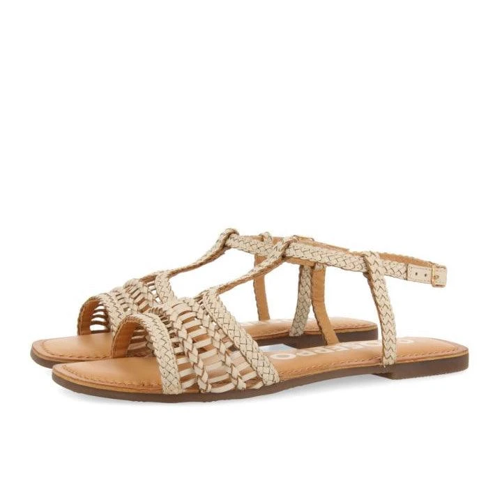 Don’t let this essential get away! Flat off-white sandals in braided leather with adjustable fastening at the ankle. Leather insoles with latex cushioning for extra comfort. Flexible soles. Insoles made of leather produced in tanneries which follow a more sustainable tanning process in line with Leather Working Group standards.