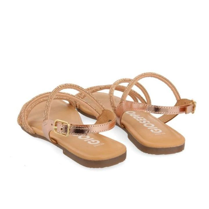 Looking for a model that’s both comfortable and chic? Flat gold sandals featuring straps with crystals and adjustable buckles. Leather insoles with latex cushioning for extra comfort. Flexible soles. Insoles made of leather produced in tanneries which follow a more sustainable tanning process in line with Leather Working Group standards.