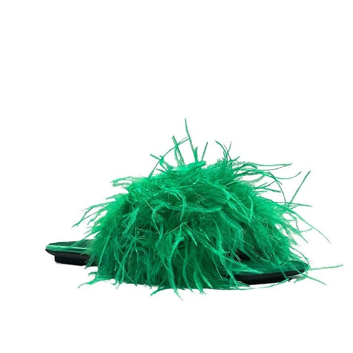 - Synthetic / Genuine Turkey Feather, Synthetic / Leather Lining, Synthetic Sole
