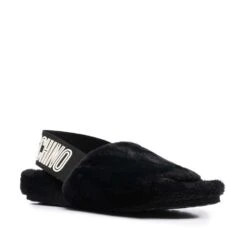 LOVE MOSCHINO FAUX-FUR LOGO STRAP SANDALS